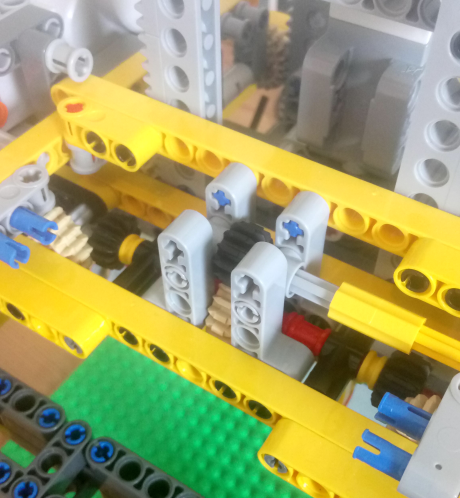 I found two main challenges. The first was to make the footprint of the arms as small as possible, while still keeping the red-white-red line true to model and keeping the arms free to move. For this, I did a ‘hack’, using a 3L bar for pivoting, and leaving a hole of one plate high + half stud wide in the arm. In this way, it was possible to keep the arm footprint 1 stud wide and 1 brick high. My first idea was to use a 1×1 Technic brick w/hole for fastening the arm to the mast, but that would require at least 1 brick + 1 plate high – and it didn’t look good.